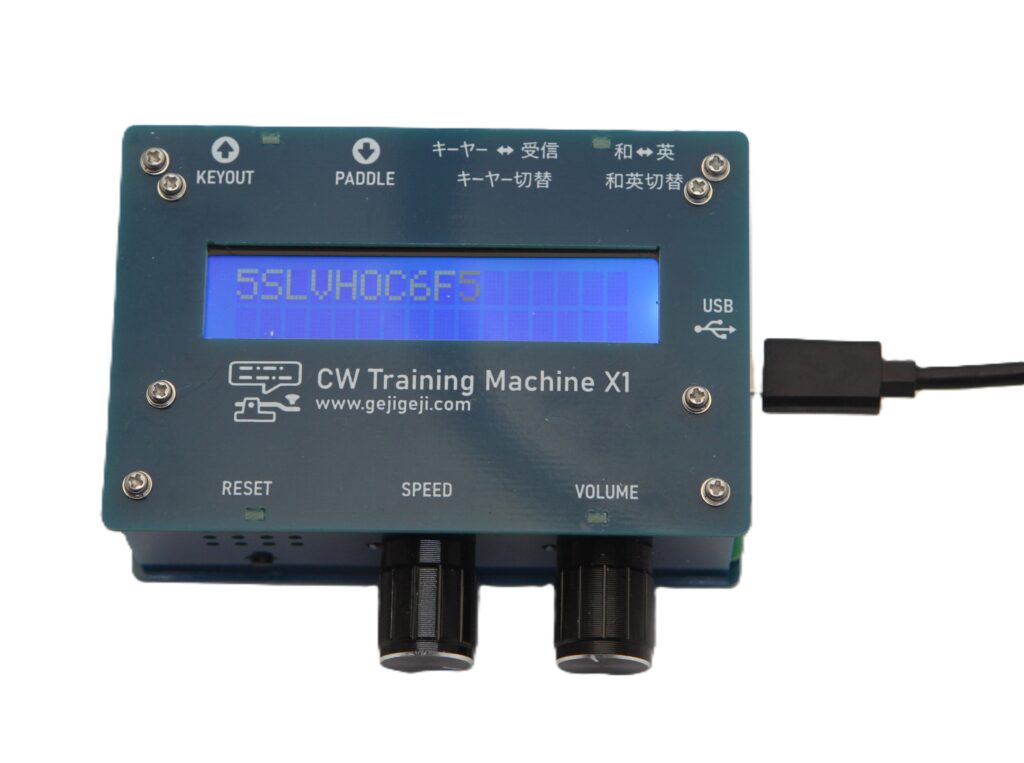 モールス練習機にパドルを接続し、パドルで打った文字が液晶画面に表示された答えと照らし合わせて間違いが無いか確認を行います。
