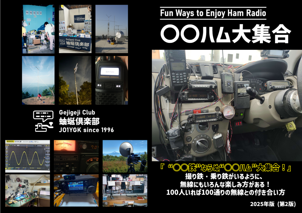 アマチュア無線のいろいろな楽しみ方を紹介する同人誌を作ってみました。『”○○鉄”ならぬ〇〇ハム”大集合!』と称して、ハムの楽しみ方を広く浅く紹介する内容となっております。今回は、初めての試みということで内容的には至らぬ点も多いかと思いますが、皆様からの意見を伺いながら、より充実した内容を目指して、今後も版を重ねていければと考えてます。
